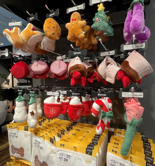 크리스마스를 대표하는 귀여운 루돌프 장식도 너무 예뻤어요. 트리를 장식하는 쿠키 모양 소품도 기존에 봤던 장식들과는 달라서 눈길이 갔어요. 하얀색 소품은 고급진 느낌이었어요. 화려한 크리스마스 느낌의 테이블보 위에 올려두면 너무 예쁠 것 같아요.