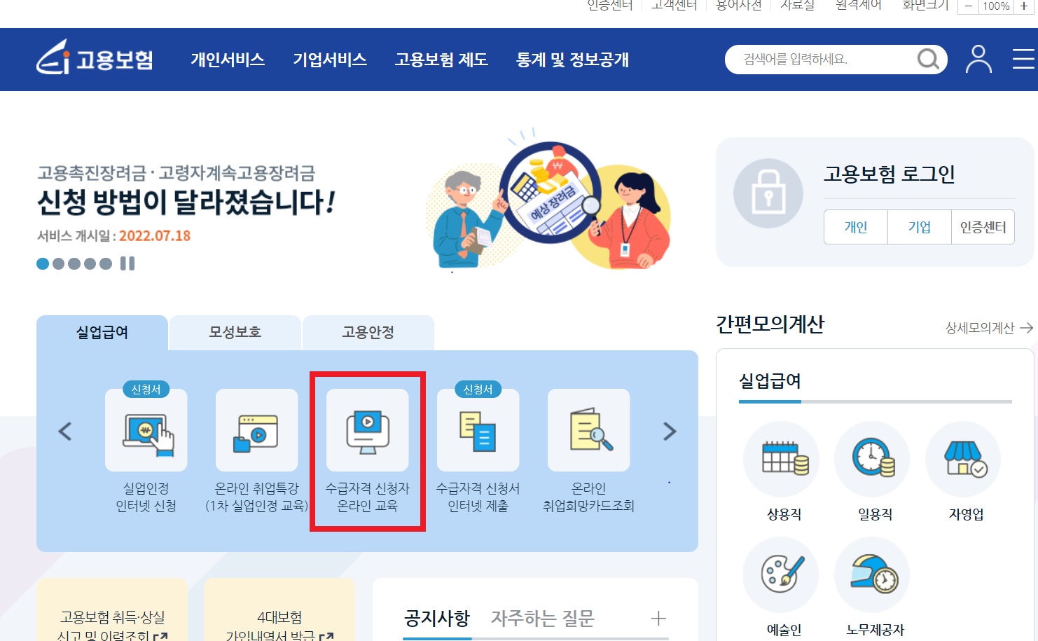 실업급여 신청자 대상 온라인 또는 오프라인 교육이 필요합니다.