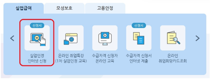 - 고용보험 홈페이지에서 실업인정 인터넷 신청 버튼을 클릭합니다.